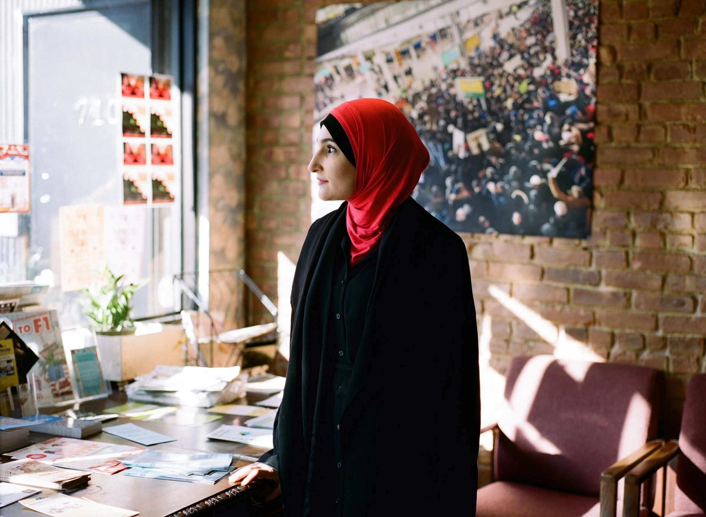 Sarsour first gained attention for protesting police surveillance of American Muslims, later becoming involved in other civil rights issues such as police brutality, feminism, immigration policy, and mass incarceration. She has also organized Black Lives Matter demonstrations and was the lead plaintiff in a suit challenging the legality of the Trump travel ban.